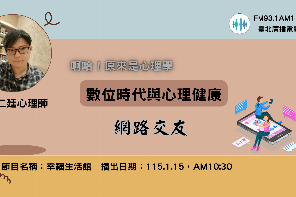 本集主題: 幸福生活館~啊哈!原來是心理學數位時代與心理健康-網路交友